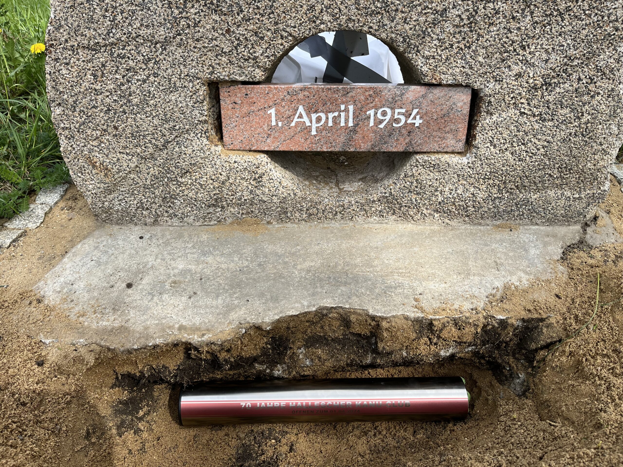 Neben dem sportlichen Geschehen auf dem Wasser wurde noch an Land die 70. Saison unserer Vereinsgeschichte gesellig eingeläutet und zelebriert. Dazu gehörte auch das Vergraben einer Zeitkapsel vor dem erneuerten Mühlstein mit dem Gründungsdatum unseres Vereins.