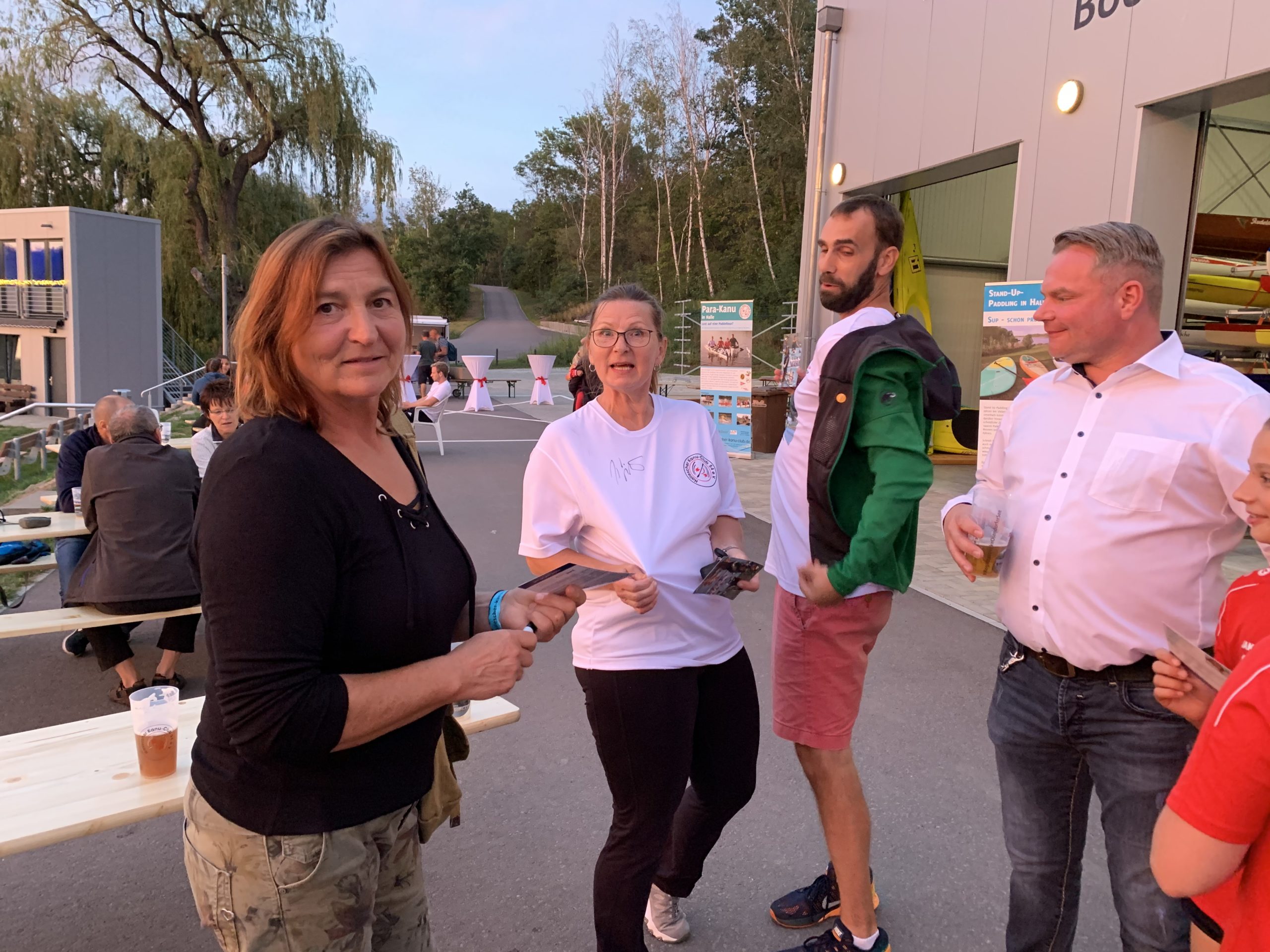 Birgit war das erste Mal an der Regattastrecke, berichtete uns aber, dass sie schon viel von der Strecke und Karl Kunitzsch, dem Vereinsgründer des HKC 54, gehört habe. Beim Blick auf die neuen Anlagen den See, der sich malerisch in der Abenddämmerung zeigte, meinte sie: „Wie in Kanada!“ Ein so schönes Kompliment aus dem Munde einer weitgereisten Sportlerin haben sich die Anwesenden geradezu auf der Zunge zergehen lassen.