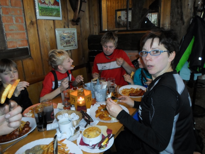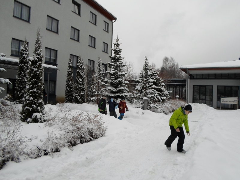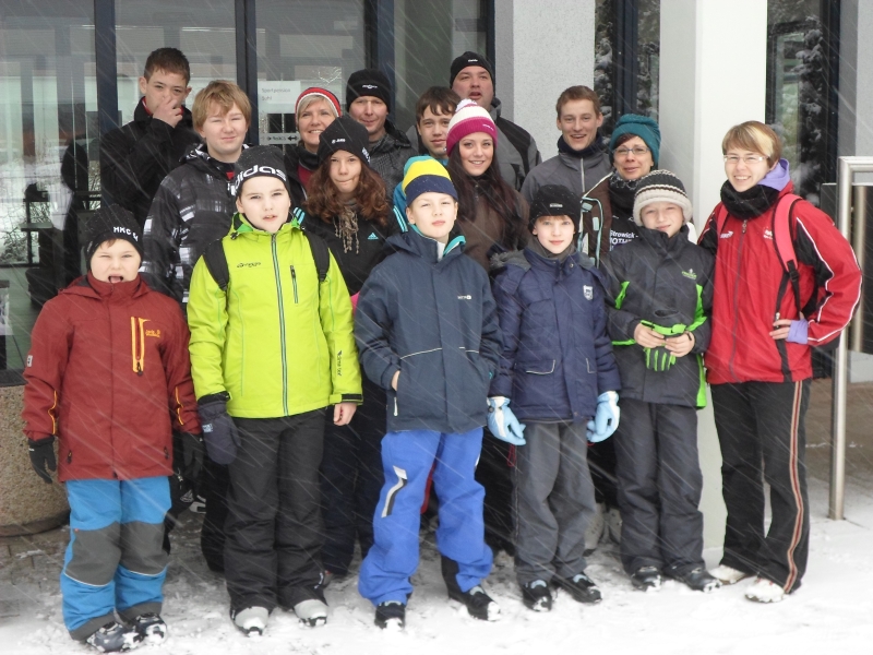 Es schneit, es schneit, kommt alle aus dem Haus. Das konnte man am Anfang des Skilagers nicht sagen. Als wir in am Samstag den 2. Februar in Suhl angekommen sind, konnte man keinen Schnee sehen. Wir mussten schon lachen, weil wir ja Ski fahren wollten. Als wir dann den Schock verdaut hatten, wurde die Zimmeraufteilung bekannt gegeben. Es waren auch alle zufrieden damit. Alle haben ihre Taschen ausgepackt und dann haben wir eine 1- stündige Laufeinheit gemacht. Es war sehr anstrengend sowohl für die Großen als auch für die Kleinen. Danach haben noch ein paar kleine Dehnübungen gemacht. Auch Maik ( neuer Name-à Maikkäfer) hat sich mit gedehnt. Wir sollten versuchen so weit wie möglich mit unseren Händen den Boden zu berühren. Alle haben es geschafft ohne Hindernisse. Doch dann hat man plötzlich ein lautes Geräusch gehört. Es war Maik´s neue Skihose die eingerissen ist. Und das schon am ersten Tag. Als wir alle fertig waren, gab es eine kleine Mittagspause. Danach sind wir in die Krafthalle gegangen, von der alle sehr begeistert waren. Denn sie war sehr groß und hatte viele Geräte, an denen sich alle gleich ausprobiert haben. Und dann haben wir 3 Kraftkreise gemacht. Und danach waren alle auch fix und fertig und sind zum Abendbrot gegangen, welches immer lecker geschmeckt hat J Am nächsten Tag lag dann endlich Schnee und wir konnten nun Skifahren. Als Vormittagseinheit sind wir fast 2 Stunden in der Ski Arena gefahren. Auch die Kleinen, also die Skianfänger, haben sich für das erste Mal Skifahren gut geschlagen. Dann sind wir wieder ins Schießsportzentrum zurückgefahren und haben Mittag gegessen und eine wieder eine kleine Mittagspause gemacht. Nach der Mittagspause folgte dann wieder eine Skitour am Rennsteig Grenzadler. Nach den beiden Einheiten sind dann alle müde ins Bett gefallen und haben auch sofort geschlafen. Nach dem Frühstück am Montag den 4. Februar haben wir einen lustigen Wettkampf in der Turnhalle gemacht. Stephanie hat uns alle in 2- er Gruppen eingeteilt. Dann hat jedes Paar 2 Teppichfetzen bekommen. Jedes Paar musste versuchen mit je einem Fetzen unter dem Fuß, 2 (für die Kleinen) bzw. 3 Runden zu laufen. Wenn der 1. Partner seine Runden gelaufen ist musste er versuchen, 3 Bälle in einen Kreis zu werfen und zu treffen. Hat er das geschafft musste er zu seinem Partner laufen und der war dran. Hat er jedoch Bälle daneben geworfen, musste er Strafrunden laufen. Der Wettkampf war sehr lustig. Für die Kinder, aber auch für die Erwachsenen. Denn auch die Eltern und Trainer mussten den Wettkampf mitmachen und haben sich tapfer geschlagen. Der Maikkäfer hat unerwartet gewonnen, aber nach der 1. Runde hat er schon keine Luft bekommen. J Aber es haben alle überlebt. Nach dem Mittag sind wir dann wieder 2 Stunden an der Wegscheide Ski gefahren. Und so ging auch schon wieder der 3. Tag vorbei. Am Dienstag den 5. Februar fand die 1. Freizeitunternehmung statt. Wir waren in Zella Mehlis im Meeresaquarium. Alle waren begeistert von den viele Fischarten die es gibt. Aber am interessantesten für alle waren der Hai und die Krokodile. Auch von den Koi´s die man streicheln konnte, waren die Kleinen nicht mehr wegzubekommen. Letztendlich mussten wir trotzdem gehen, weil das Mittagessen und die 2. Trainingseinheit noch auf uns warteten. Und so ging es dann nach dem Essen wieder an die Wegscheide. Und damit war auch der Dienstag zu Ende. Natürlich gab es auch jeden Abend kleine Spielchen, welche die Trainer und Eltern mit den Kindern im Gemeinschaftsraum gemacht haben. Am Mittwoch den 6. Februar fand dann die Tagestour in Oberhof-Schmücke statt. Robin, Nils und Christian sind als eine Gruppe gefahren und die Kleinen mit den Eltern und Trainern in einer Gruppe. Nils wurde mitten beim Ski fahren auf dem Berg vom Radio Brocken angerufen. Es war der Radio Brocken 13.000€ Anruf. Und er hat es auch noch vermasselt. Alle mussten jedenfalls lachen. Als die Tagestour dann noch vielen harten aber lustigen Stunden vorbei war, durften sich dann alle in ihren Zimmern oder im Gemeinschaftsraum aufhalten und spielen. Robin, Christian, Nils, Erik und Vanessa hatten noch nicht genug von der Tagestour und haben sich dann noch 1 Stunde in der Krafthalle ausgepowert. Aber auch dann waren ihre Kraftreserven aufgebraucht. So ging ein anstrengender Tag zu Ende. Einen Tag später fand dann der Skiwettkampf in der Skiarena in Oberhof statt. Es war dasselbe Prinzip wie in der Turnhalle. Nur das jeder ein Einzelkämpfer war. Alle haben sich auch hier wieder tapfer geschlagen und den Wettkampf In Oberhof überstanden. Dafür gab es dann eine Belohnung im Spaßbad in Suhl. 2 Stunden wurden gebadet und vor allem gerutscht. Henni und Vanessa konnte man nur im Whirlpool wiederfinden. Es hat allen viel Spaß gemacht. Dann haben wir uns wieder auf den Rückweg gemacht. Fix und fertig vom schwimmen haben alle wieder Freizeit gehabt und nichts weiter erahnt. Doch dann haben wir noch eine gruselige Nachtwanderung gemacht. Alle hatten Angst, aber am Ende hat sich herausgestellt, dass Robin derjenige war, der die gruselige Botschaften in den Schnee geschrieben hat. Trotzdem haben ihm alle verziehen. Am nächsten und letzten Tag, nachdem das Skizubehör abgegeben wurde, sind wir nach Oberhof zum Reifenrodeln gefahren. Es war zwar sehr kalt, aber dennoch lustig. Einige Bilder dazu sind schon auf der HKC Internetseite. Somit ist eine schöne Trainingslagerwoche leider viel zu schnell zu Ende gegangen. Es wurde viel gelacht und trainiert und wir hoffen, dass es die nächsten Jahre auch wieder so lustig werden wird.