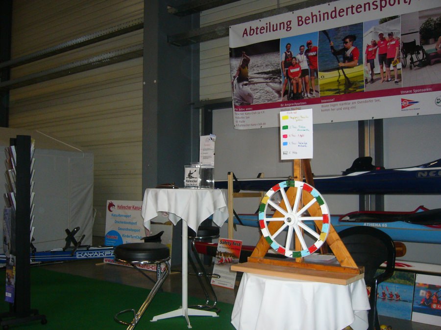 An dieser Tombola beteiligten sich auch Messebesucher aus Halle und anderen entfernten Städten. Als Hauptpreis winkte das „Hallesche Paddelticket“ (Saisonmitgliedschaft für 3 Monate), als weiterer Preis ein Geburtstagsgutschein und als 3. Preis ein Probepaddeln beim Halleschen Kanuclub, inclusive Betreuung durch einen persönlichen Trainer.