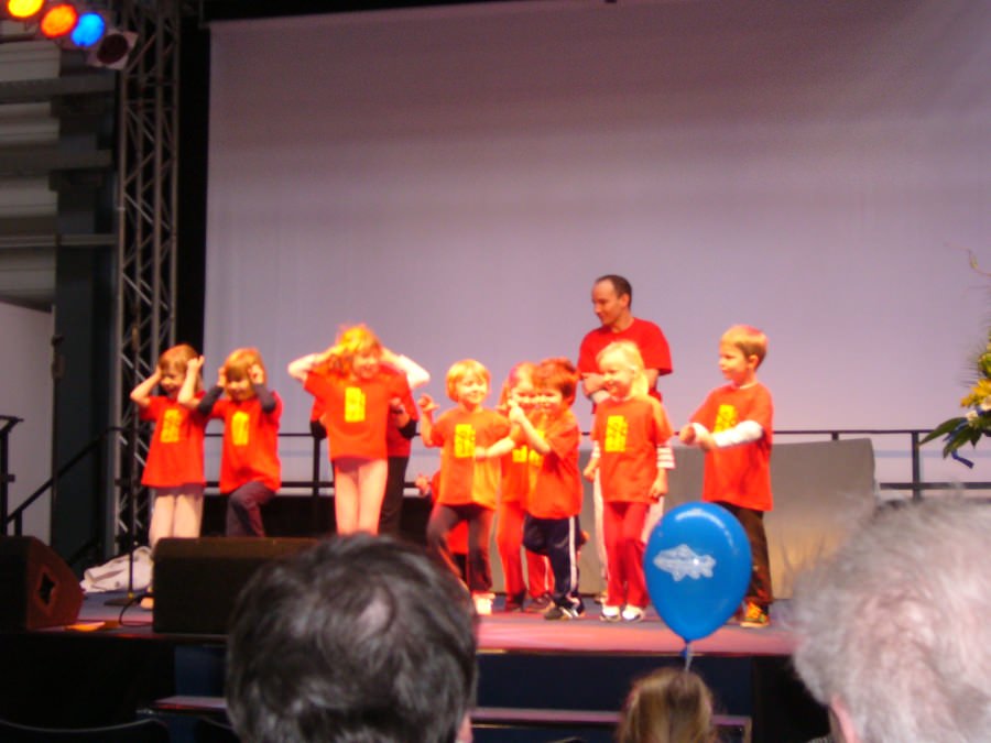 Am Samstag, den 02.02. gegen 11 Uhr startete der Bühnenauftritt unserer jüngsten Sportler aus der Kindertagesstätte BUK „Wurzelhaus“ aus Halle-Radewell, mit dem der HKC 54 e.V. eine Partnerschaft unterhält. Unter dem Slogan : „Von der Kita in den Kajak“ zeigten die Knirpse mit viel Einsatz ihre Turnübungen. Natürlich war dieser Auftritt auch für die Messebesucher ein „niedlicher“ Augenschmaus.