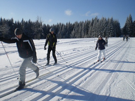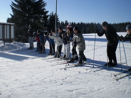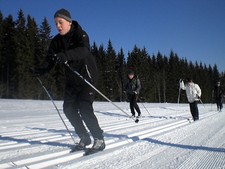 Am Samstag haben wir uns alle um 8 Uhr am Osendorfer See getroffen. Wir waren noch sehr müde, aber haben uns trotzdem auf das Skilager gefreut. Wir wurden nun alle in unsere Busse aufgeteilt und dann ging die Reise los. JOHANNGEORGENSTADT WIR KOMMEN!!! Es steht uns eine anstrengende, aber auch lustige Woche bevor. Als wir dann nach ca. 3 Stunden Fahrt angekommen sind, wurden wir auf unserer eigenen Etage in die Zimmer aufgeteilt. Danach sind wir alle zum Skiausleih gefahren und haben die Skiausrüstung/Skatingausrüstung ausgeliehen, welche unsere ständigen Begleiter für die Woche waren. Dann haben wir noch Mittag gegessen, und haben uns dann 16 Uhr auf den Weg in eine Nachmittagseinheit gemacht. Wir sind die Kammloipe hinaufgefahren, was für die meisten anfangs noch sehr anstrengend war, denn viele waren noch nie mit im Trainingslager. Am Abend haben wir dann noch Abendbrot gegessen und viele sind nach dem anstrengenden Tag schon schlafen gegangen. GUTE NACHT TAG NR. 1 J