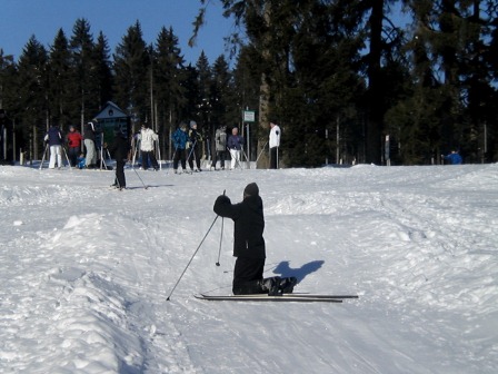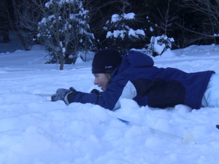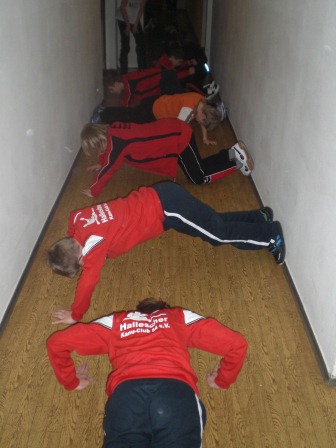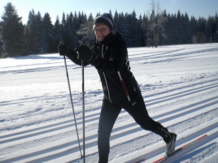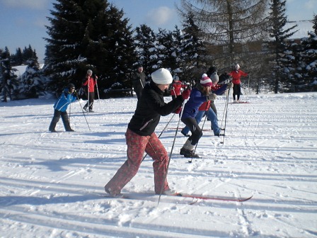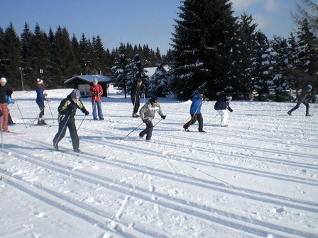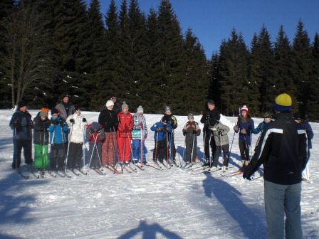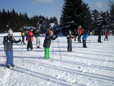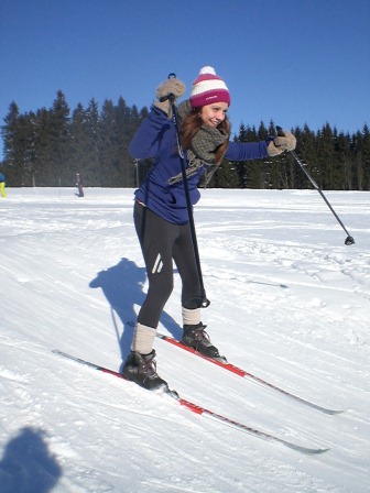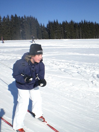 Der Tag begann mit einem wunderschönen Sonnenaufgang und die Sonne lud uns regelrecht zum Skifahren ein. Nach dem leckeren Frühstück haben wir uns sofort auf unsere Skier geschwungen und sind mit der Sonne den Berg hinaufgefahren, den wir immer hinauf mussten. Mathias und Dagmar brachten den Anfängern die Skigrundlage bei, d. h. wie in einer Skischule. Sie zeigten ihnen, wie man richtig bremst und erklärten die Technik des Skifahrens. Währenddessen fuhren die Profis die Kammloipe hinauf. Nach ca. 3 Stunden Training gab es Hähnchen mit Kartoffeln und mit einem kleinen Klavierstück von Vanessa ließ man die 1. Trainingseinheit ausklingen. Und nach der Mittagspause haben wir dann 14 Uhr trainiert. Wir sollten alle einfach nur unsere Ausdauer trainieren, indem wir die Rollerpiste fahren mussten. Ex kam darauf an, wie viele Runden wir in einer bestimmten Zeit schaffen. Das Highlight des Tages war die Abendeinheit, als wir von 17-18 Uhr Fußball im kniehohen Schnee gespielt haben. Es war total lustig und die meisten lagen sowieso nur im Schnee und haben sich gekampelt. Vor allem Mathias, Philip und Andi hatten es auf die anderen abgesehen, und wenn man nicht aufpasste, lag man schon im Schnee. Am Abend haben wir mit Tischtennis den Tag Nr. 2 beendet.
